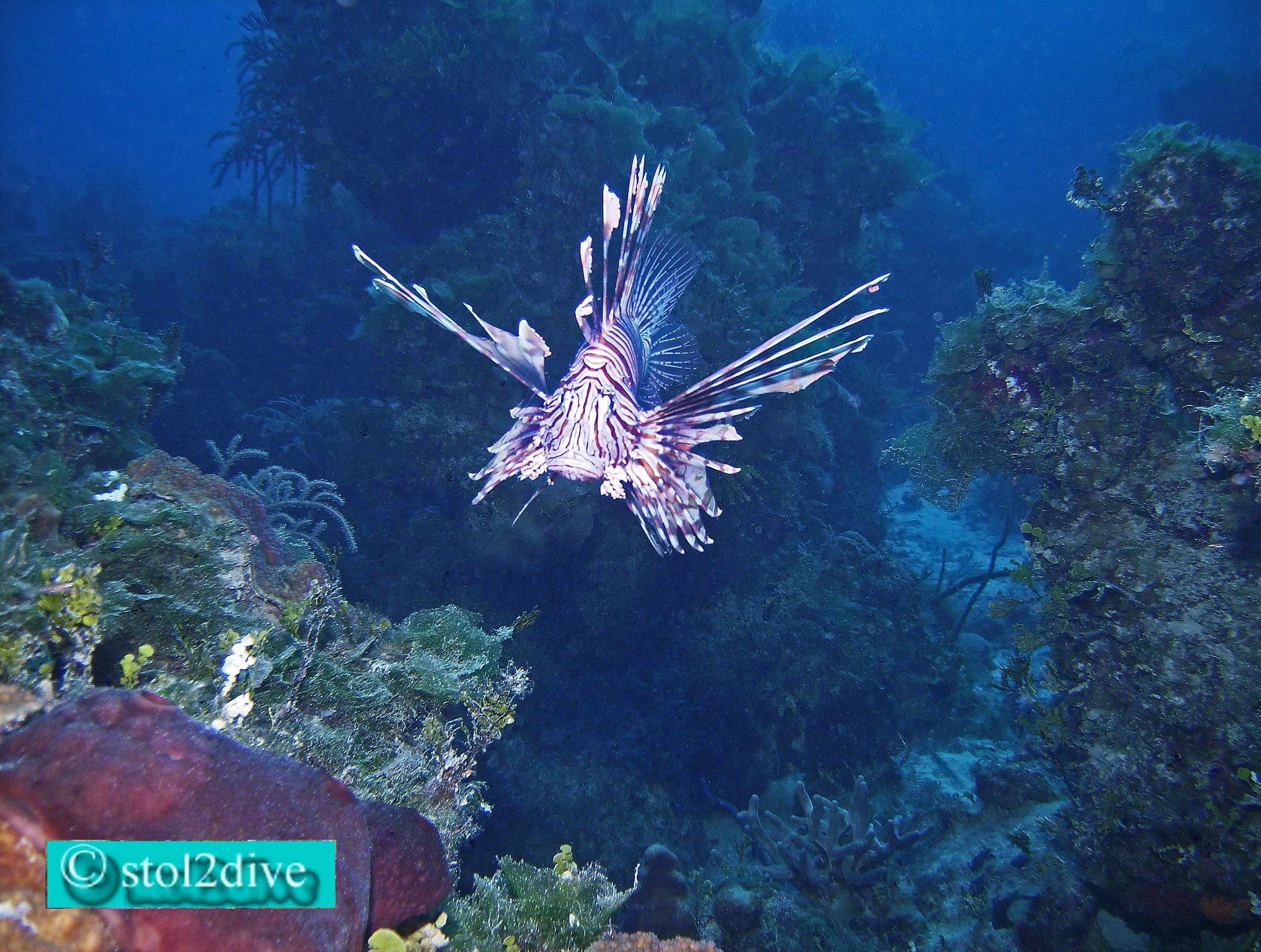 "It all started back in 2002 when local divers off the coast of North Carolina have spotted a group of lionfish... The divers were perplexed by such an unusual discovery and have collected an actual specimen, which became the first solid evidence of lionfish spreading in the Atlantic....According to NOAA, these pervasive creatures have become well established in Bermuda, the Bahamas, Cuba, the Dominican Republic, Jamaica, Puerto Rico, Turks and Caicos, and the Cayman Islands. There are also reported sightings in Belize, Haiti, U.S. Virgin Islands, Mexico, Aruba, Curacao, and Bonaire....there is a hypothesis that their initial introduction has occurred during Hurricane Andrew in 1992 when at least six lionfish escaped from a broken beachside aquarium near Biscayne Bay. The genetic testing supports this theory. It is also likely that continued release of unwanted lionfish by aquarium enthusiasts caused additional introductions and range expansion of the lionfish. With no natural enemies and an extremely high reproductive rate of 2 million eggs a year from one female, lionfish have spread rapidly through the South Florida Estuaries, the Gulf of Mexico and the Caribbean Sea. Although now the colder water temperatures are keeping their numbers in check to the north, warming ocean conditions may permanently expand the range of this fish along much of the eastern coast of the United States."