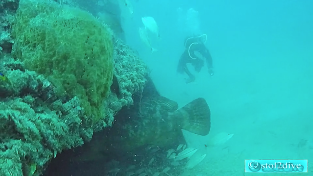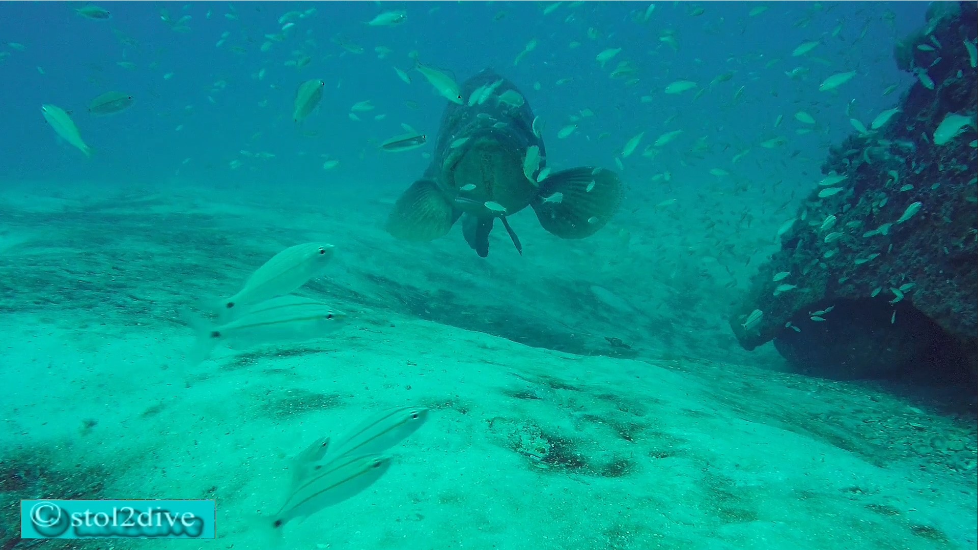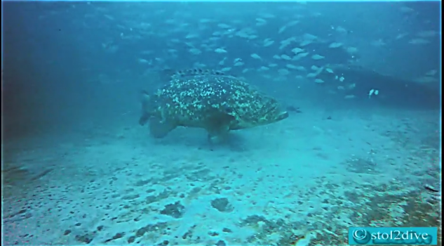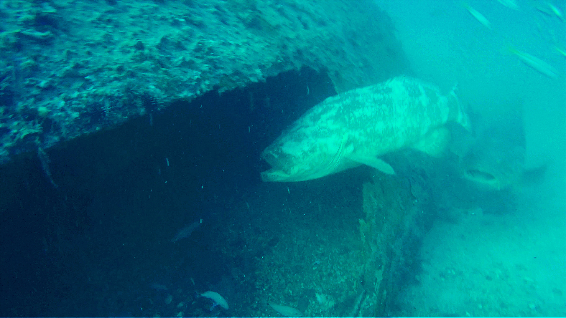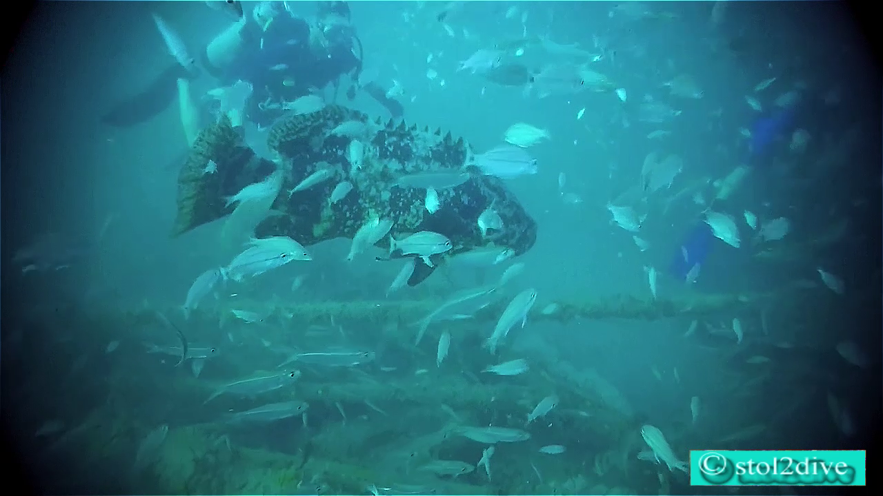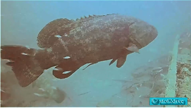 To help you to have a better idea about the large size of these groupers, the following excerpt from the previous video shot over a wreck of a shrimpboat off Tarpon Springs displays them in a sort of parallel view with nearby divers.