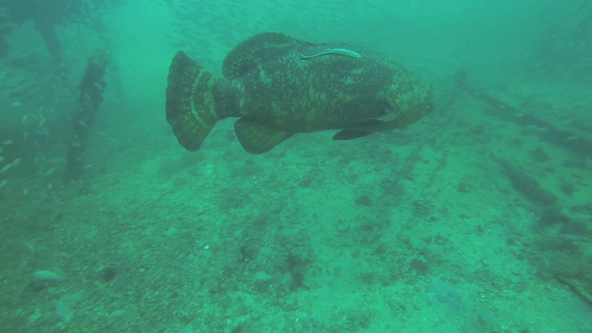 This little clip lets you realize the amazing growth that will transform this young goliath grouper barely 50 cm long, probably 4 or 5 years old, into a huge fish over 300 to 400 kg when he becomes a 15 to 16 years old adult.