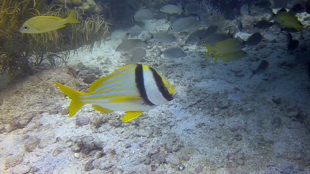Cette vidéo, tournée le 29 juillet 2015 sur les coraux qui entourent Key Biscayne le long de la côte Est de Floride au sud-est de Miami, illustre bien l'aspect physique de ce poisson qui se déplace seul ou en bancs en eaux côtières peu profondes (2 à 20 m) parmi récifs et fonds rocheux.