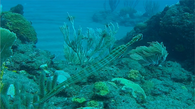Craintif, il se laisse difficilement approcher et reste immobile afin de se camoufler. Il se tient très souvent en position verticale, tête vers le bas imitant les hautes tiges des gorgones arborescentes (Plexaurella par exemple), et adoptant par la même occasion une livrée assortie au paysage car il peut changer de couleur par mimétisme passant d'un brun rougeâtre à un jaune vif constellé de tâches bleues et grises. Nageur peu habile mais capable d'accélérations fulgurantes, il s'enfuit s'il se croit repéré ou lorsqu'on l'approche de trop près.